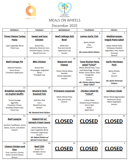 Welcome to CEAP Meals on Wheels! Our program serves over 450 seniors every year and is a member organization of Meals on Wheels America.